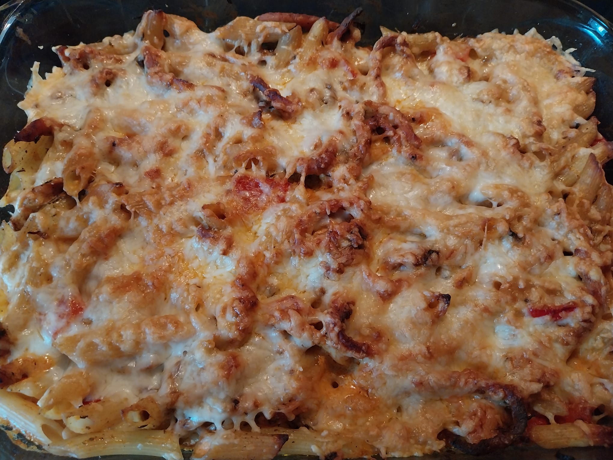Gyrosauflauf mit Nudeln in Metaxasauce