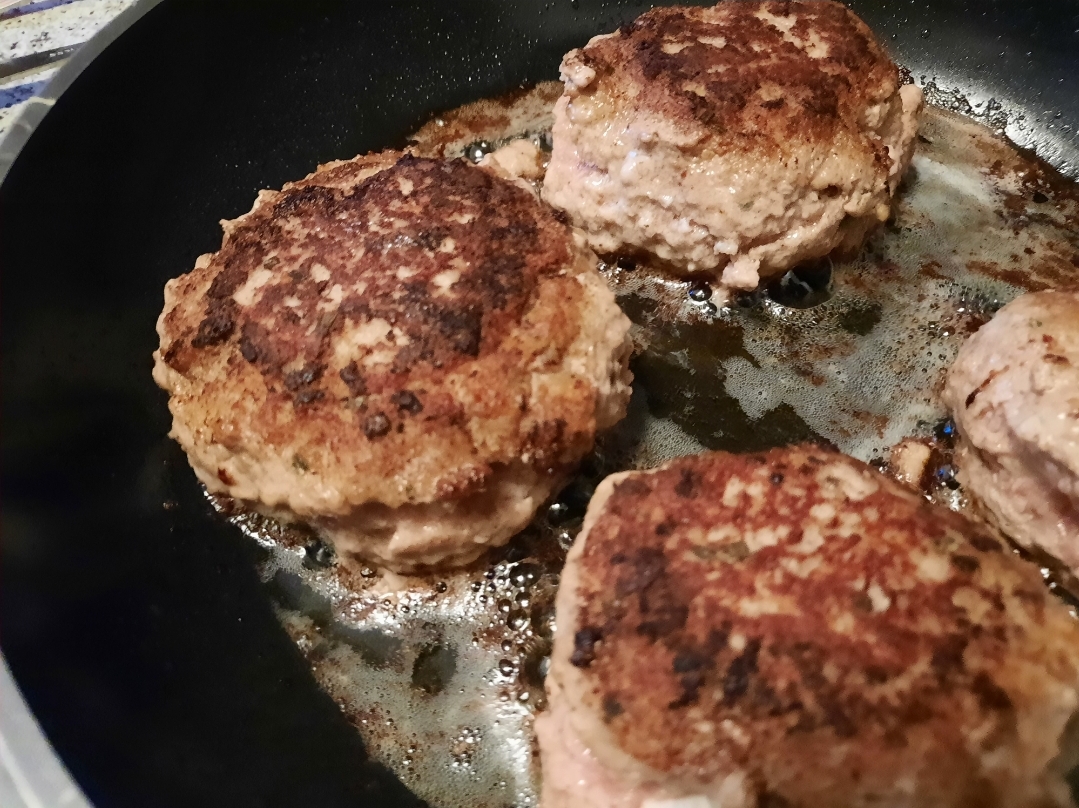 Die Frikadellen in einer Pfanne mit Öl gar braten. Das Öl sollte dabei nicht zu heiß sein, damit der Käse schön zerläuft.
